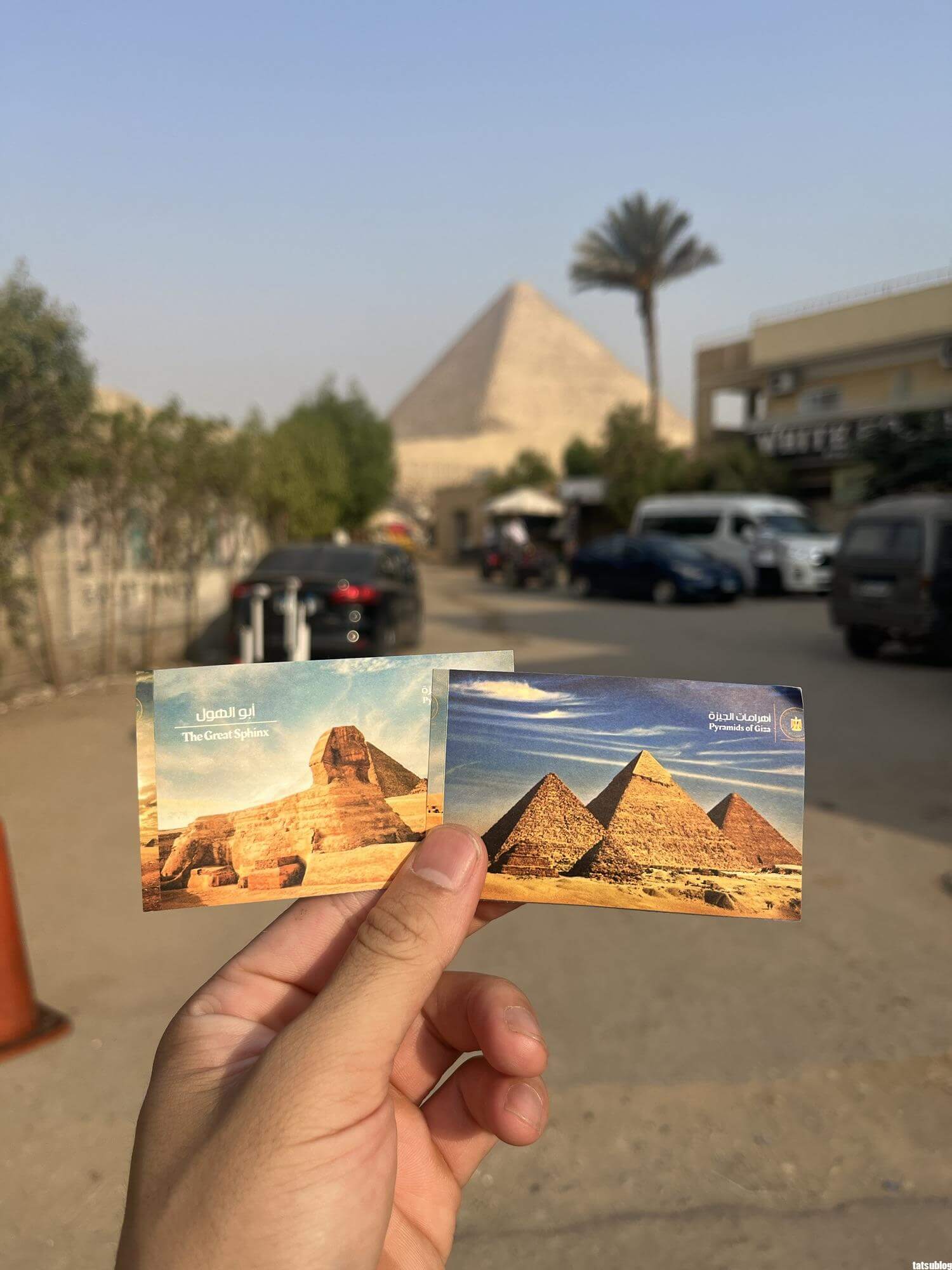 ピラミッドの入場券をピラミッドを背景にパシャリ。